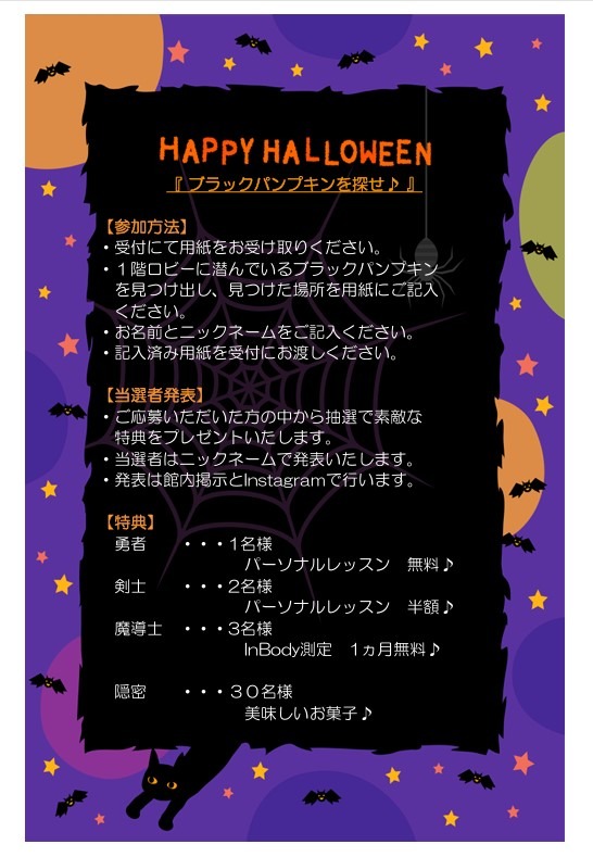 悪の心を持つブラックパンプキンが磐梯町ふれあいセンター内に解き放たれてしまった!4体のブラックパンプキンを探し出そう♪