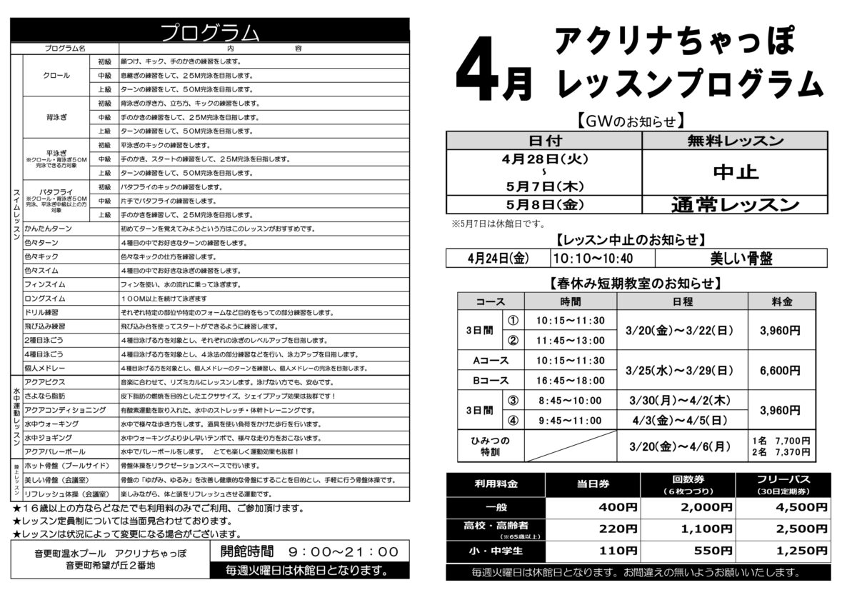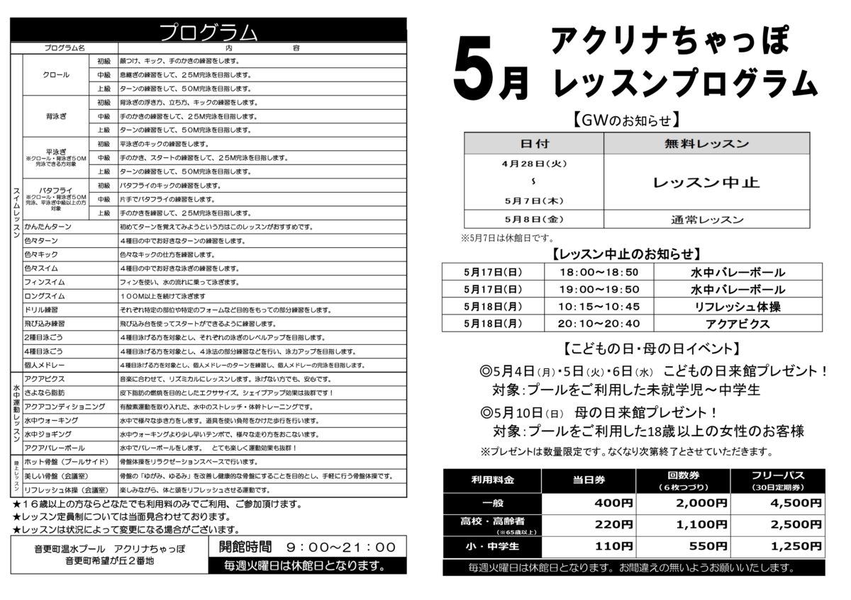 音更町温水プール アクリナちゃっぽ