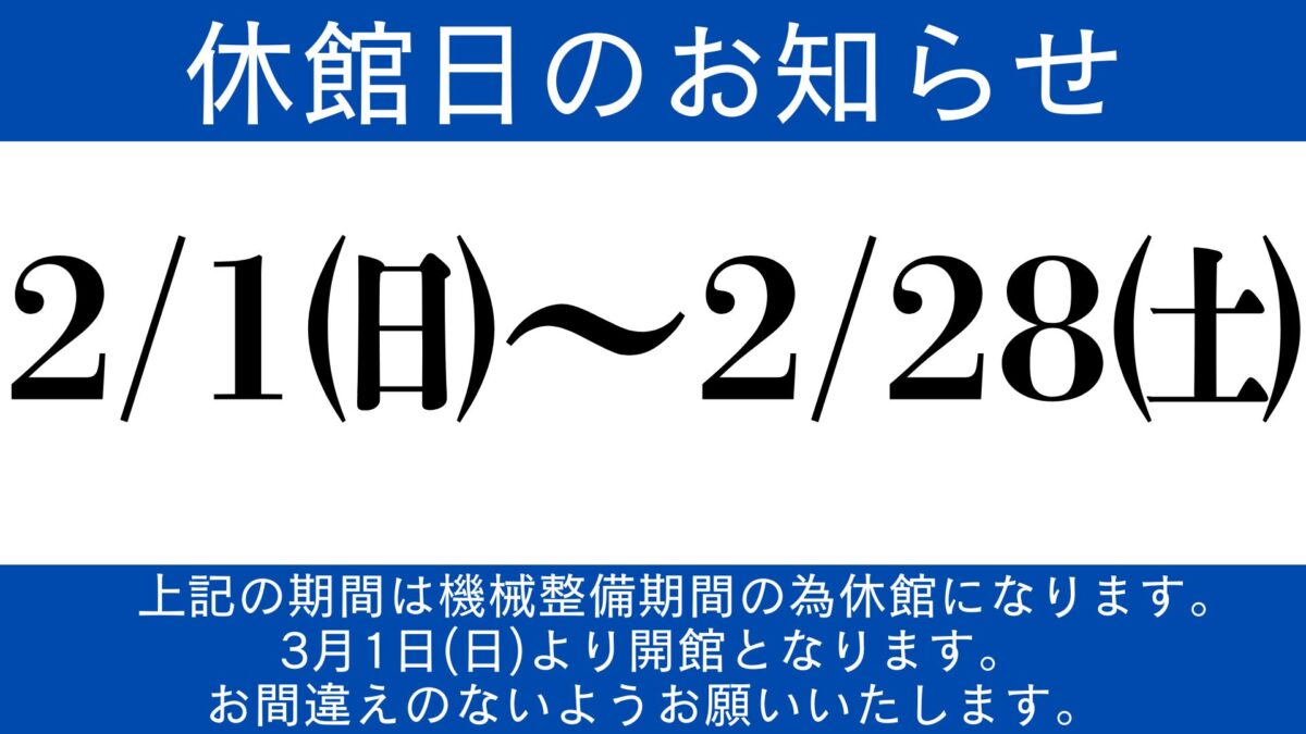 2月休館のお知らせ