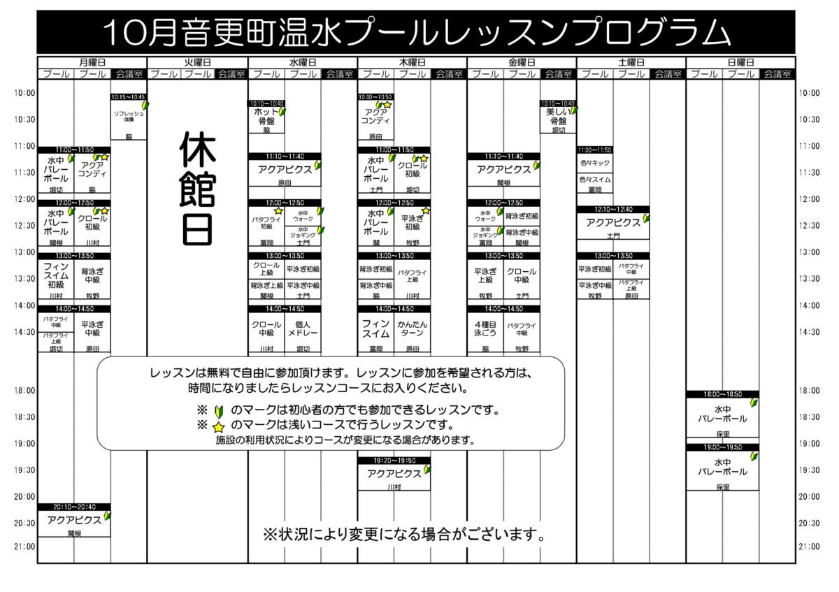 2025.10月プログラム 2025年10月1日からのスイムレッスンを掲載いたします。