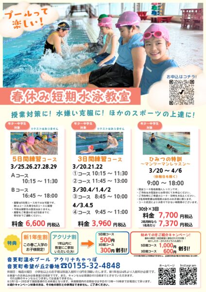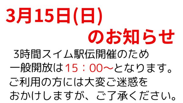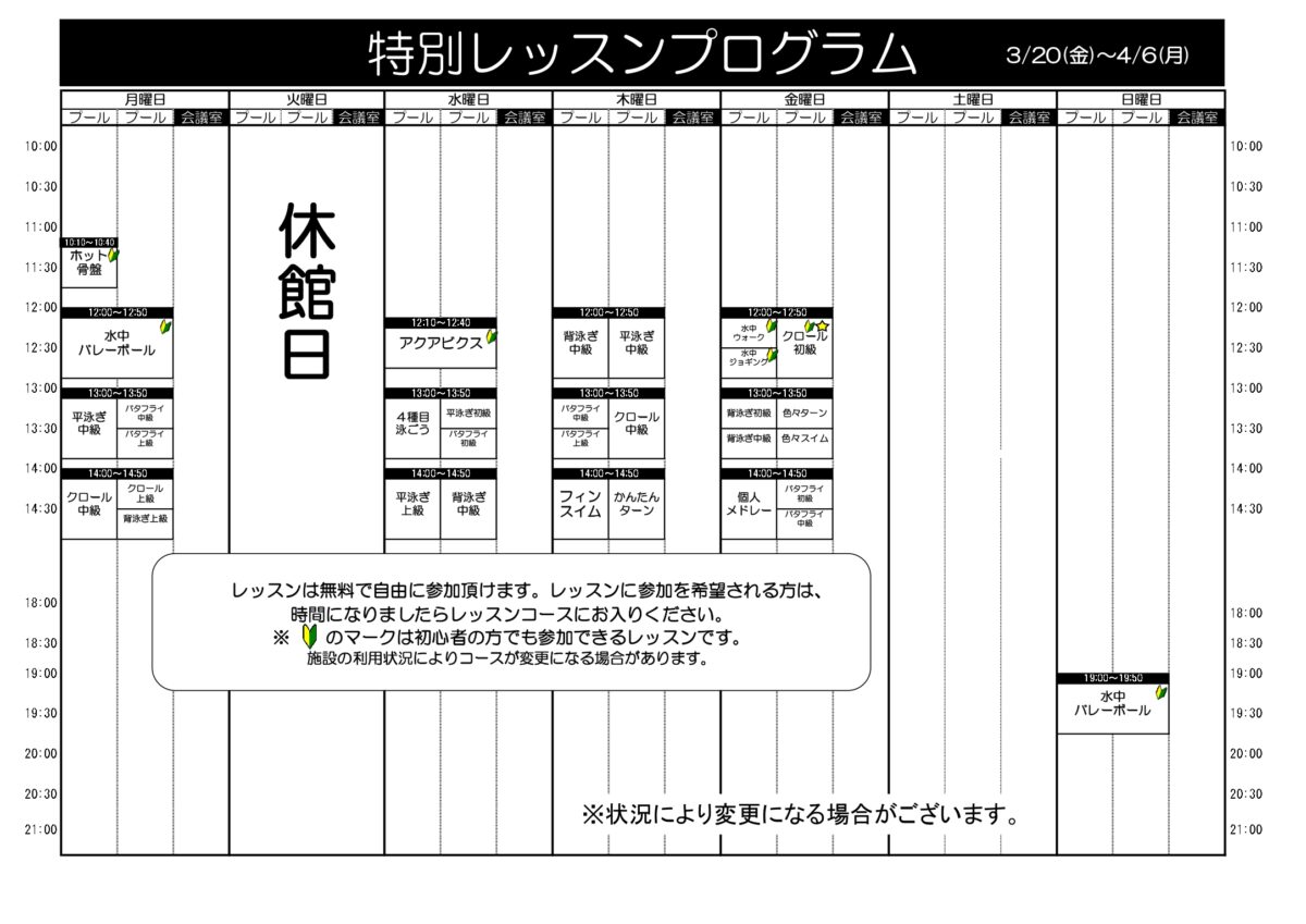 2026.3月プログラム 2026年3月1日からのスイムレッスンを掲載いたします。