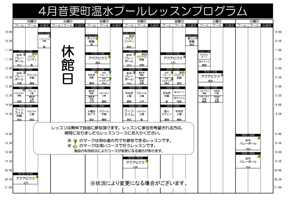2026年4月レッスンプログラム