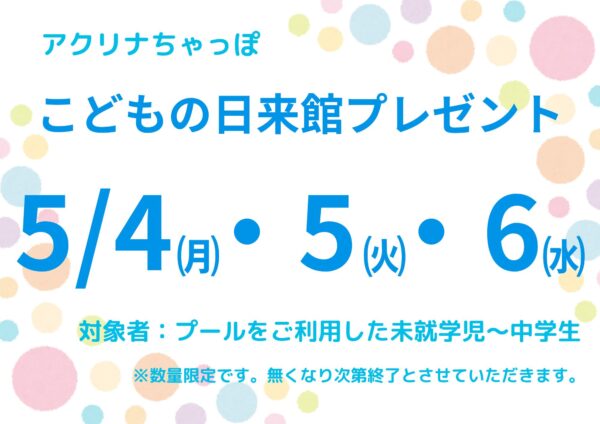 プールを利用した18歳以上の女性にプレゼントをお渡ししております。