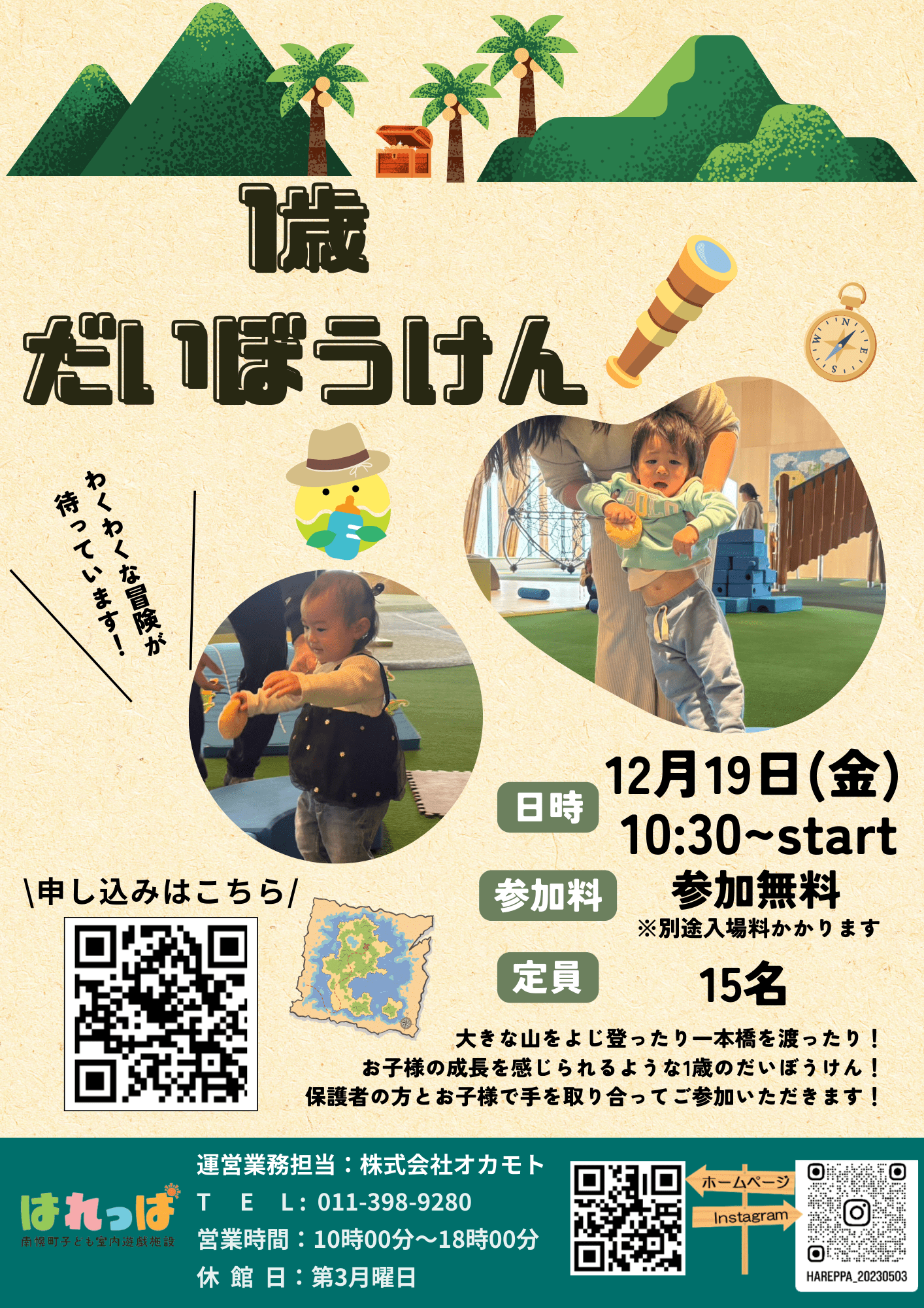 - お子様のケガやトラブル防止のため、保護者の方はお子様から目を離さないようにお願いいたします。当施設内におけるお客様同士のトラブル、または紛失盗難等につきましては、一切の責任を負いかねますのであらかじめご了承ください。
