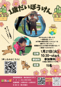 はれっぱ節分のお知らせ 2026 1/14 2026年1月14日 開催日時2月3日(火) ①11:00 ②15:00※同じ内容で2回開催いたします。場所はれっぱ きゃべっちパーク内参加料無料お問合せ 011-398-9280 または 受付窓口にて お知らせ トピックス 現在のイベント よかったらシェアしてね! URLをコピーしました! 1歳だいぼうけん 開催のお知らせ