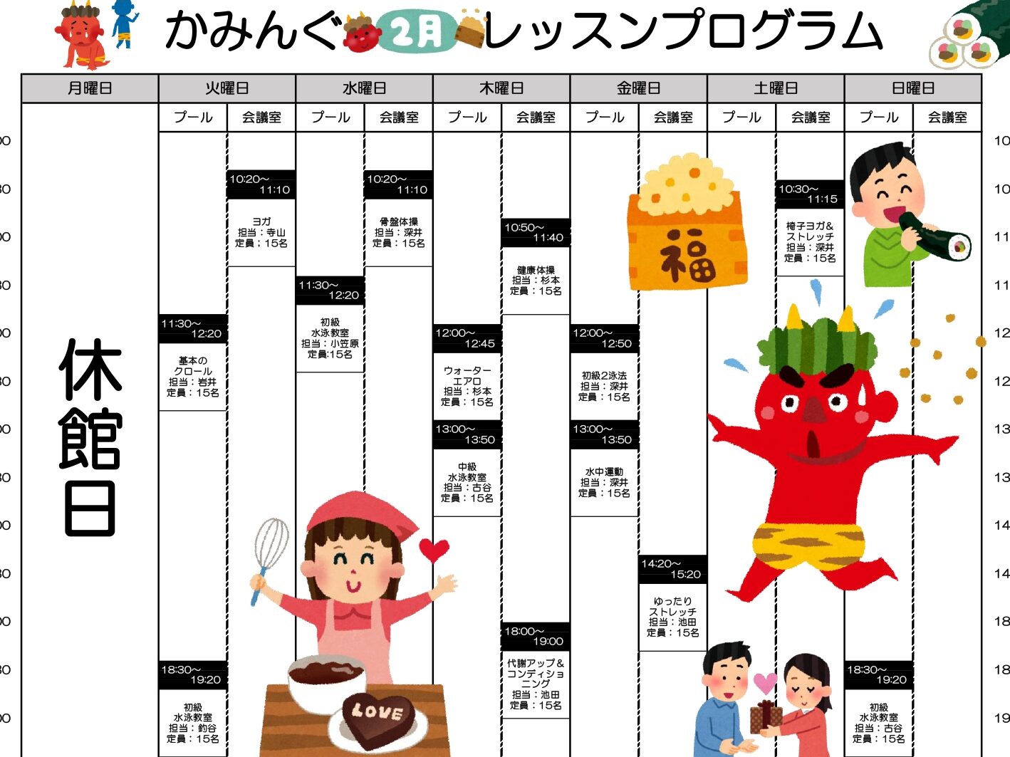 遊泳は午前9時から午後8時までご利用いただけます。