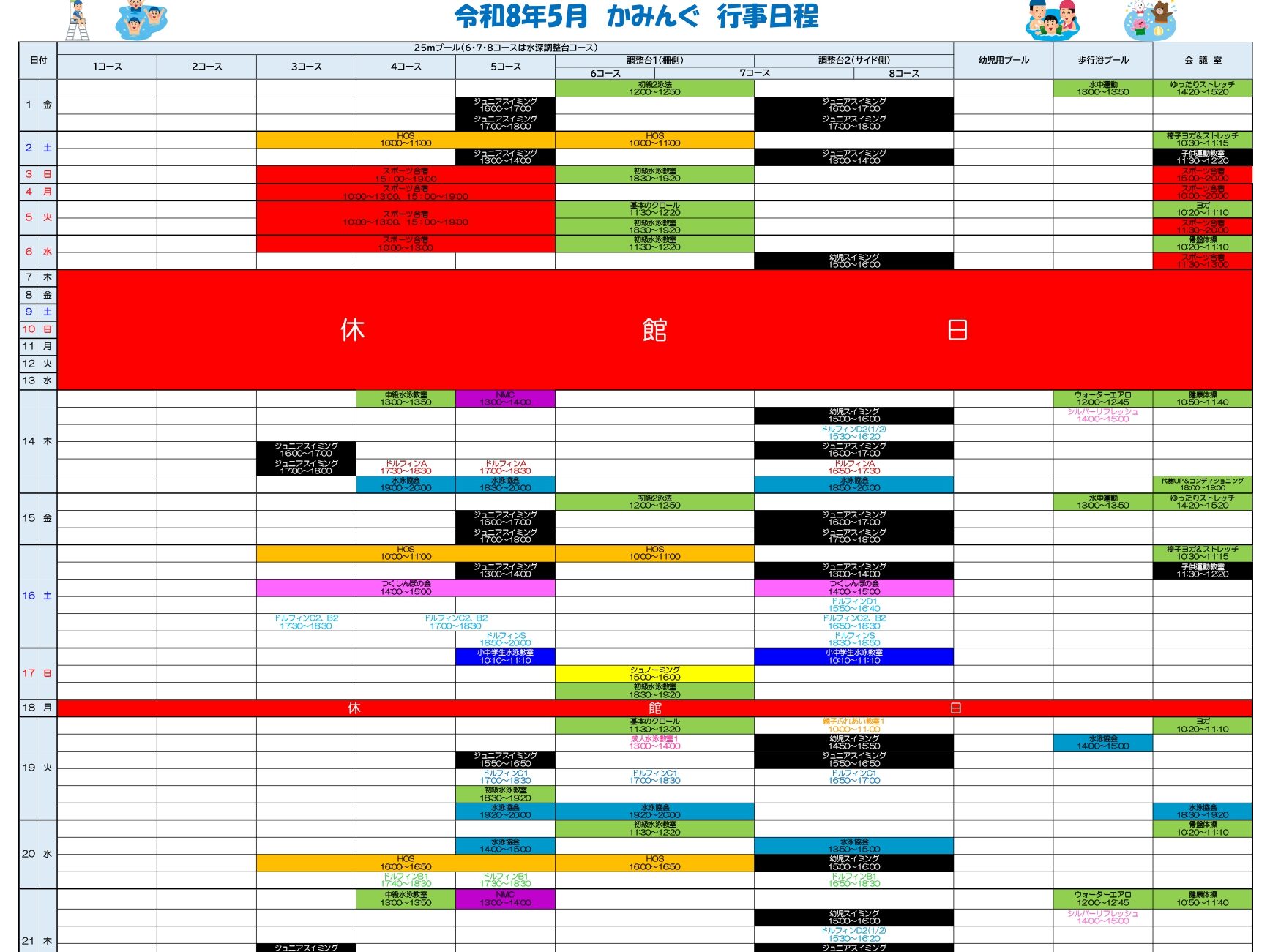 遊泳は午前9時から午後8時までご利用いただけます。