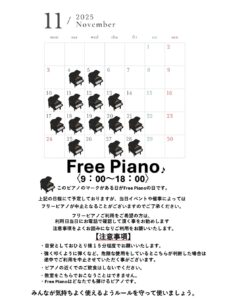 フリーピアノのご利用をご希望の方は、利用日当日にお電話で確認していただく事をお勧めいたします。