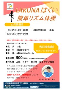 LAKUNAはくいの4階ホールでリズム体操を実施します。