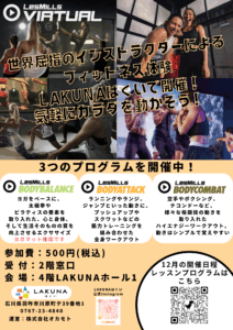 世界トップクラスのインストラクターのレッスンが受けられる最新プログラム「LESMILLS Virtual」はレズミルズのライブレッスンをバーチャル環境で再現します。世界屈指のインストラクターによる最先端のグループエクササイズを間近に感じる事ができます。