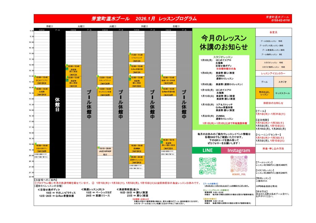※レッスンご参加の際は別途入館料が発生いたします。(プールは大人1回券400円、スタジオは大人1回券240円)