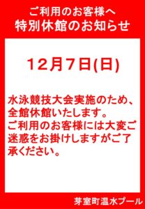 2025年11月プール専用利用予約表 2025 10/31 2025年10月31日 予約表の各レーンの色付き部分は、専用利用の予約が入っているため一般開放しておりませんので予めご了承ください。 翌月分の予約表は毎月25日~翌月3日の間に掲載いたします。 お知らせ よかったらシェアしてね! URLをコピーしました! URLをコピーしました! 11月の特別無料スタジオレッスン 12月7日(日) 特別休館日のお知らせ