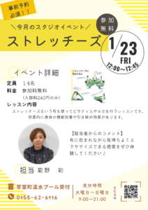 【日時】1月9日(金)、1月16日(金)、1月23日(金)、1月30日(金)
