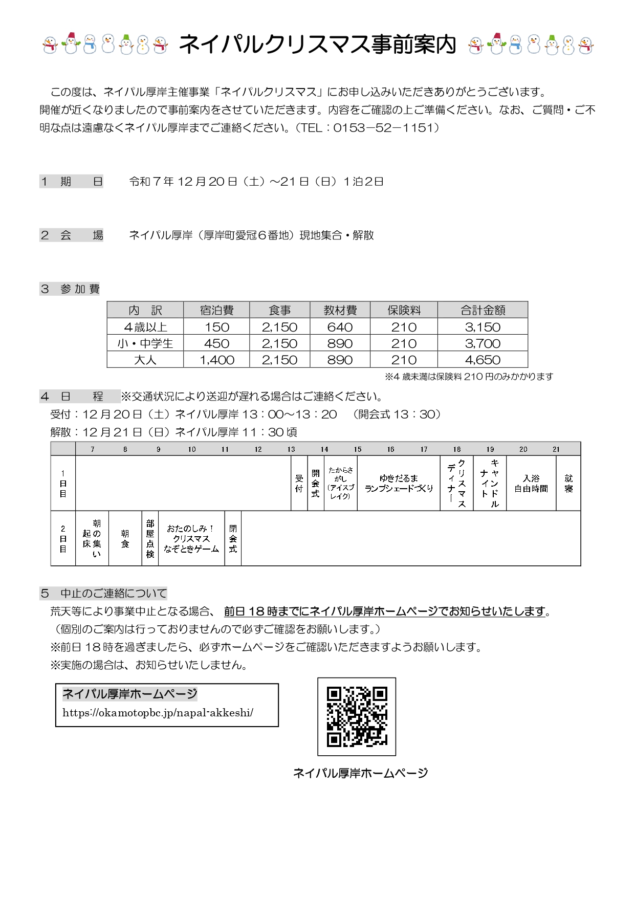 この度は令和7年度主催事業「ネイパルクリスマス」にお申込みいただきましてありがとうございます。