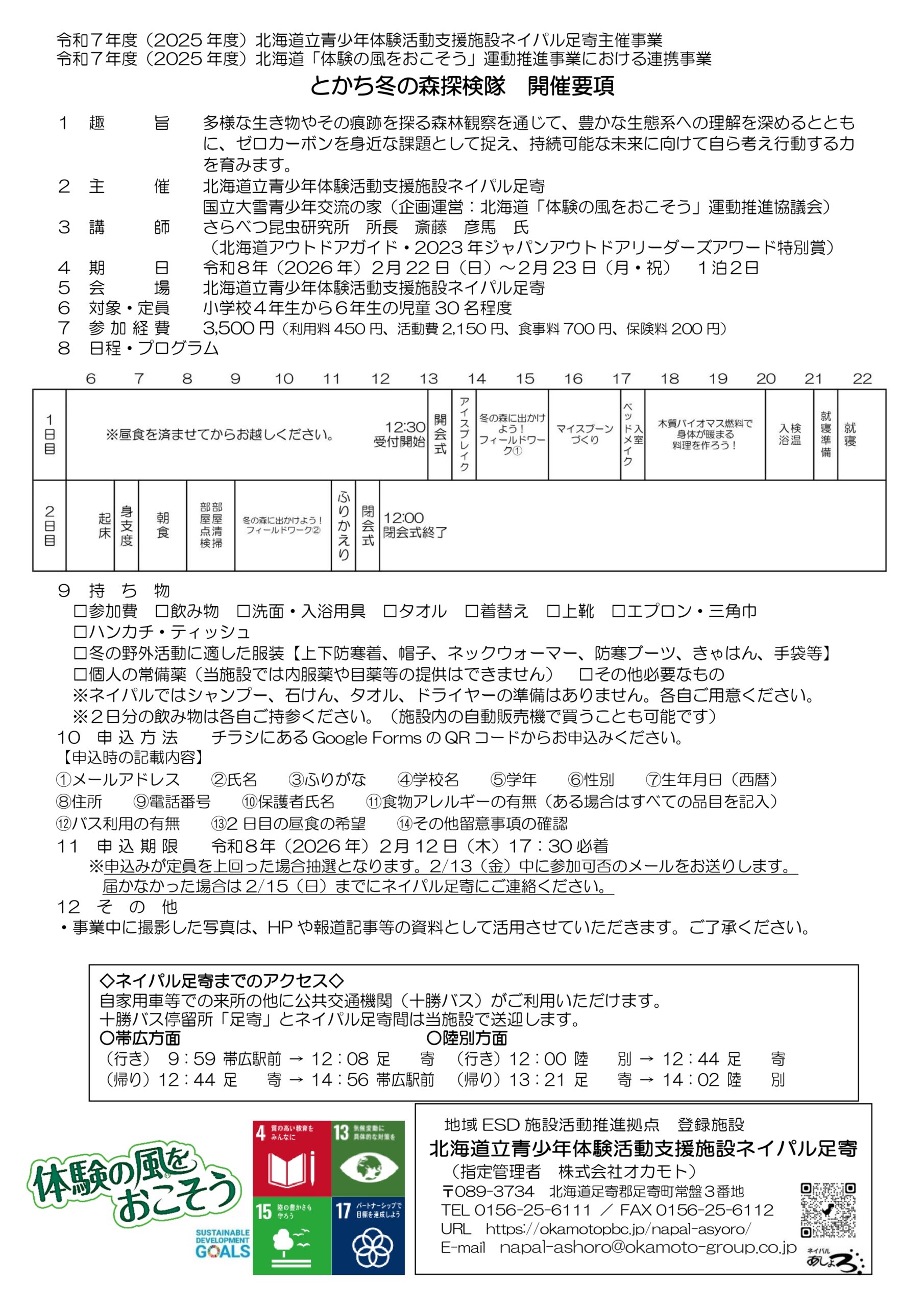 主催事業「とかち冬の森探検隊」開催のお知らせ