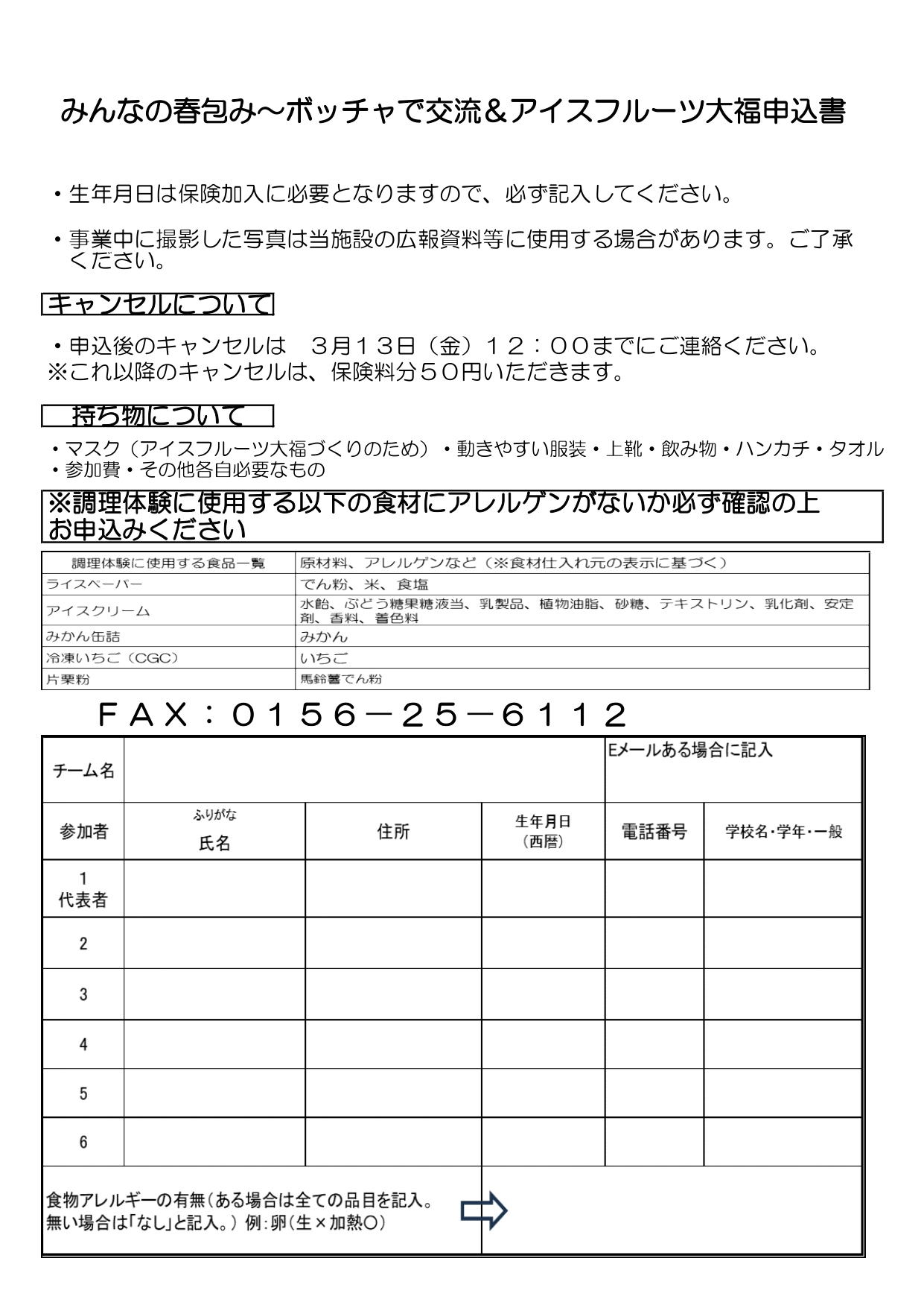 主催事業「みんなの春包み~ボッチャで交流&アイスフルーツ大福」開催のお知らせ