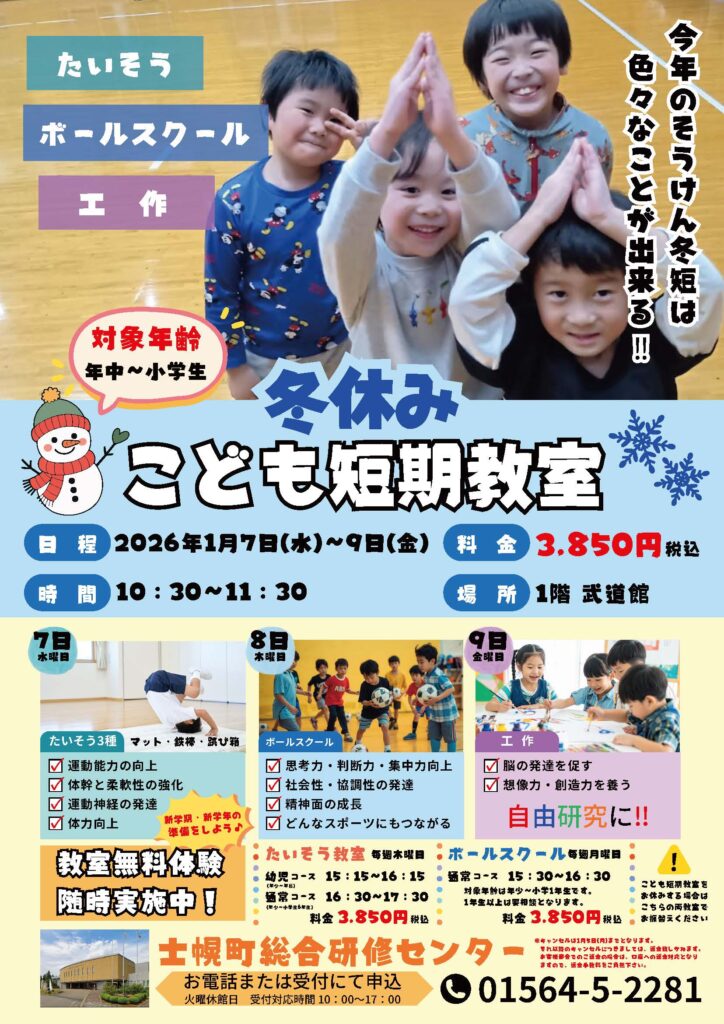 3日間限定プログラム!冬休みこども短期教室を開催いたします!
