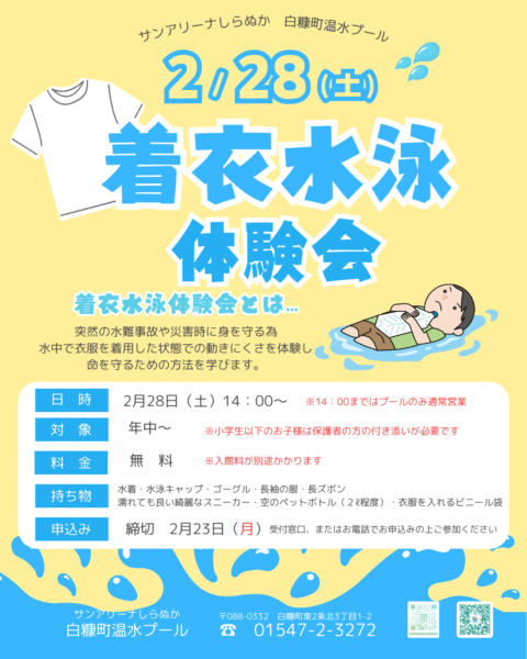 2/28(土)着衣水泳体験会開催✨
