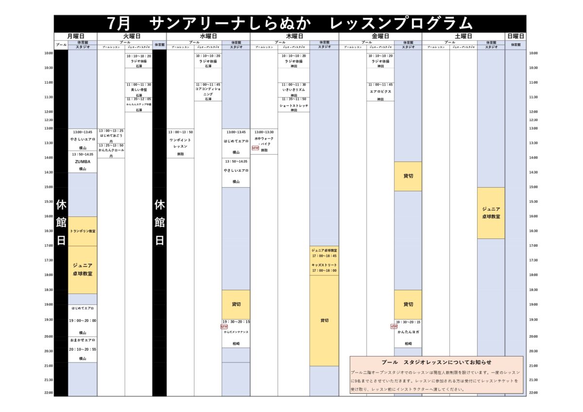 2021年7月レッスンプログラム|白糠総合体育館・温水プール