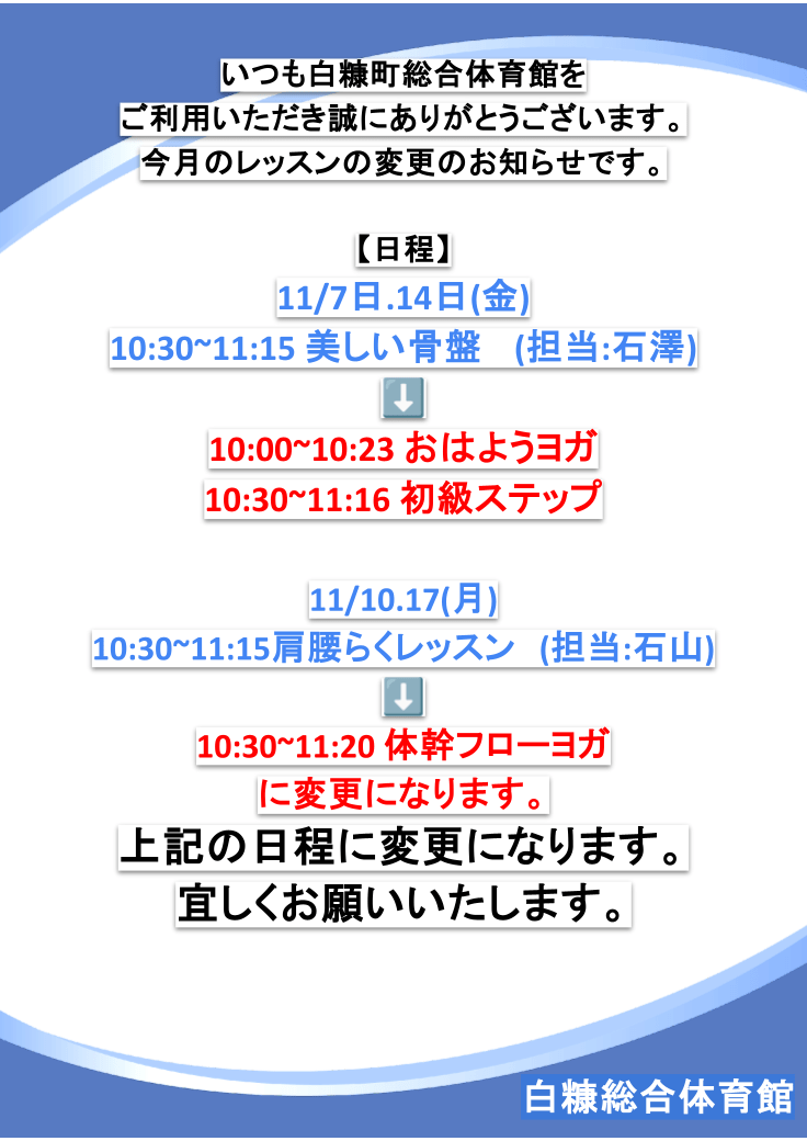 いつも白糠町総合体育館をご利用いただきありがとうございます。