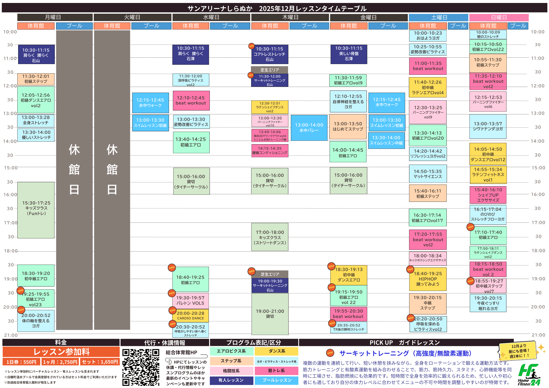 サンアリーナしらぬかでは毎月様々なレッスンを開講しています♪
