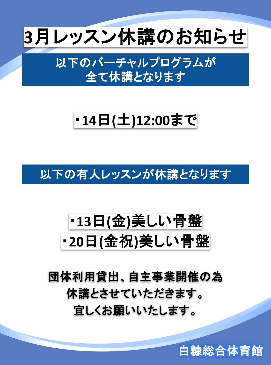 3月レッスンプログラムの休講については上の画像をご確認ください。