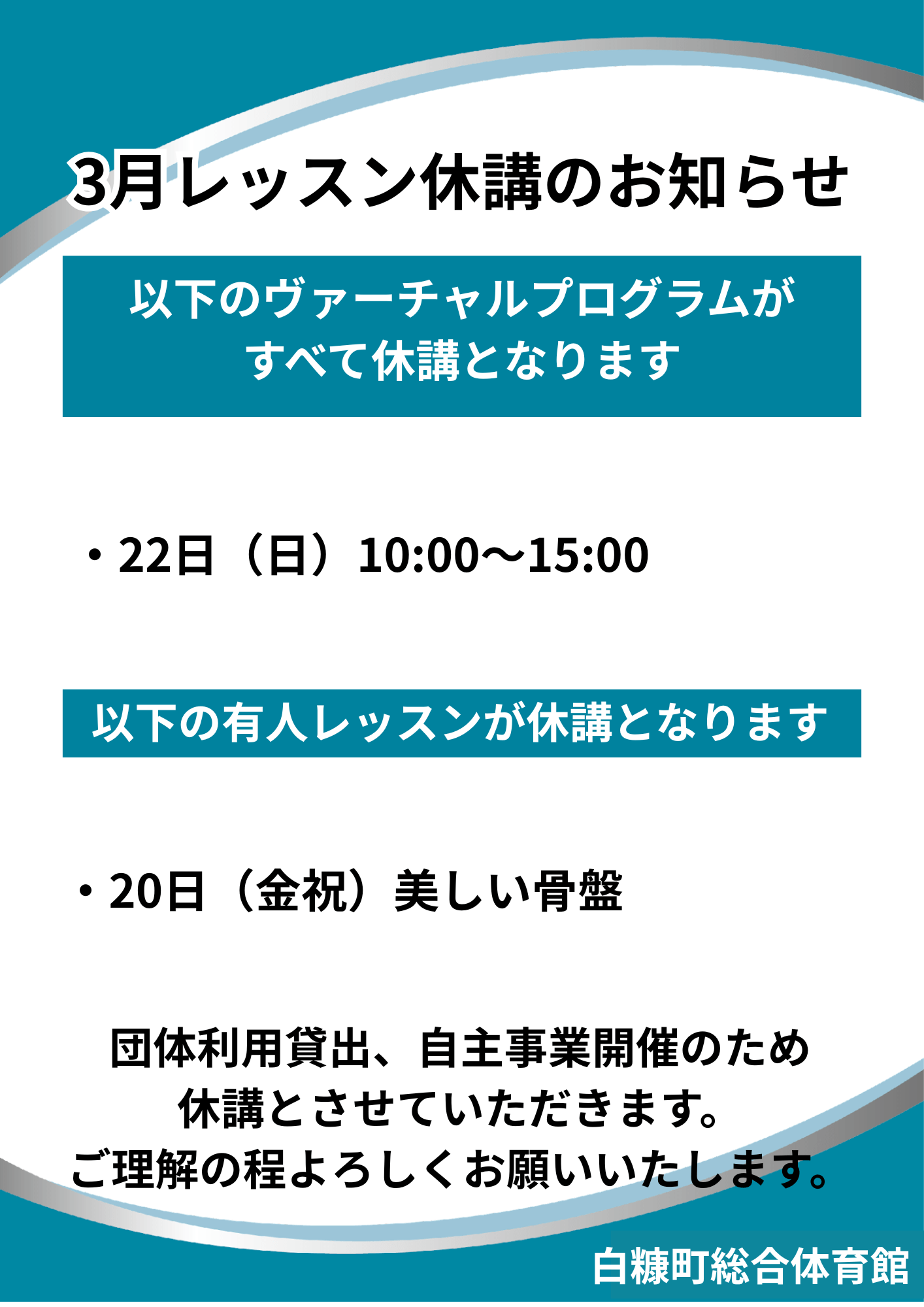3月 レッスン休講のお知らせ