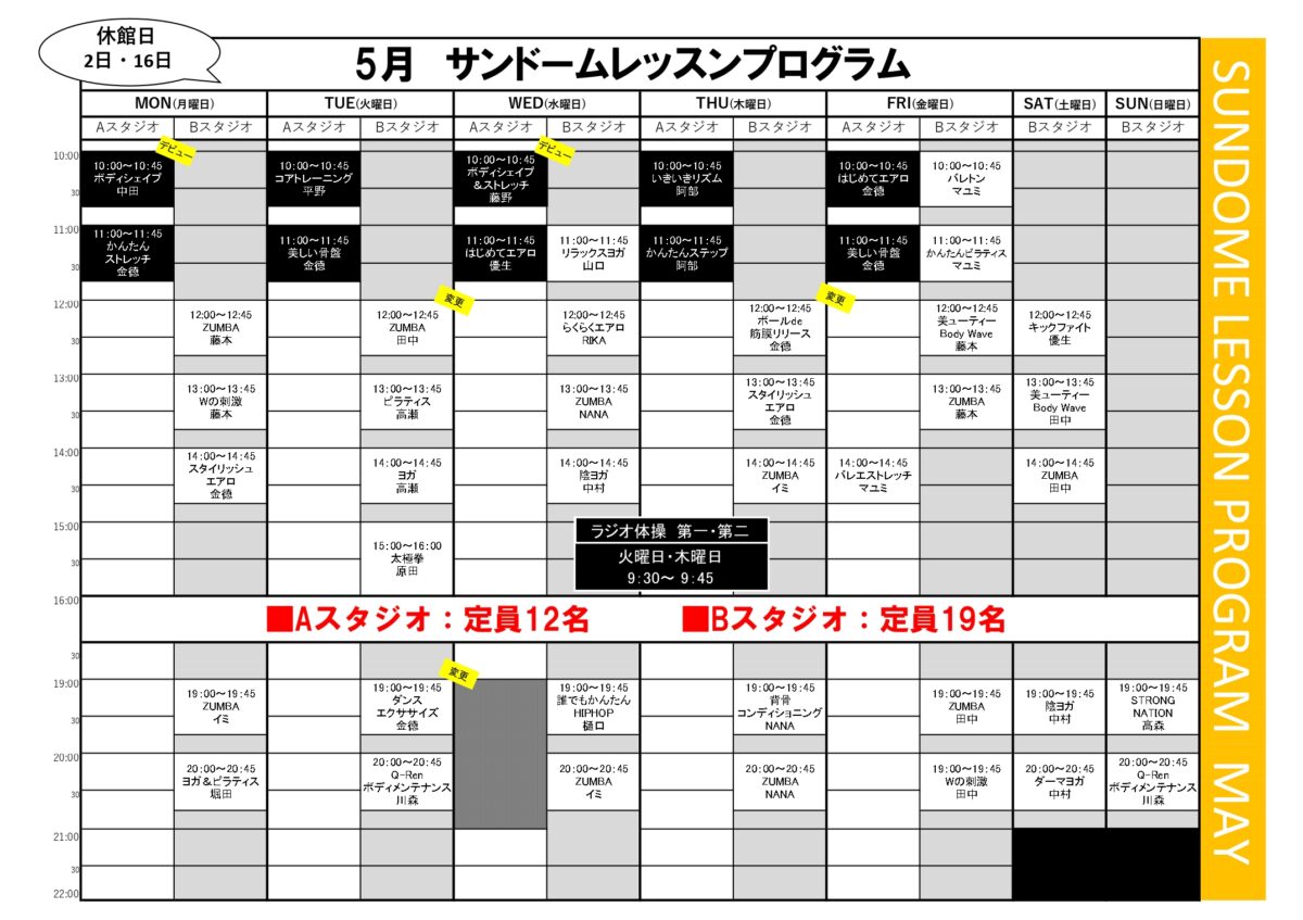 なお、5月1日(日)~8日(日)は、ゴールデンウィーク特別レッスンプログラムで行います!