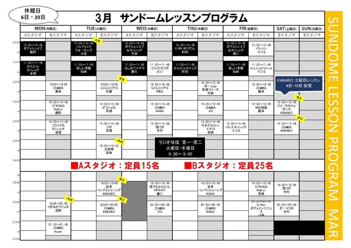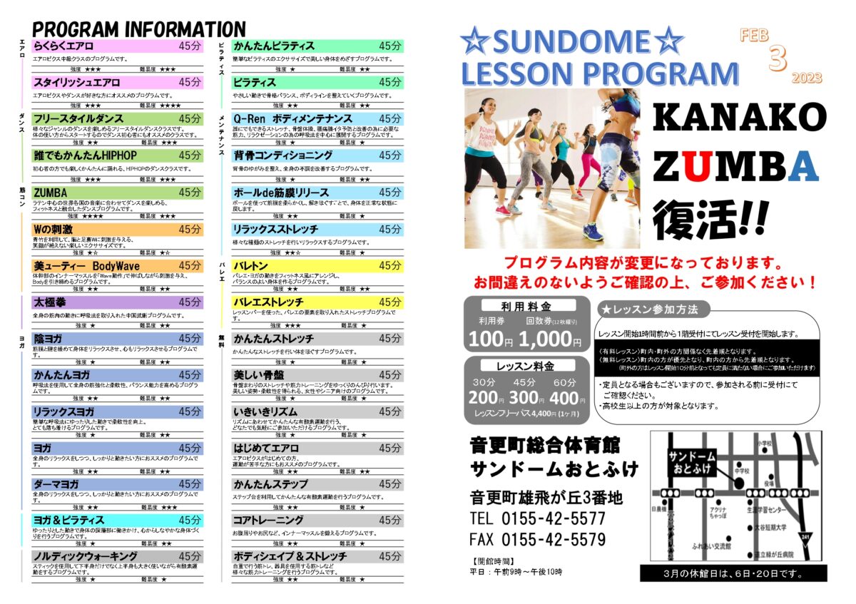 音更町総合体育館 3月レッスンプログラム