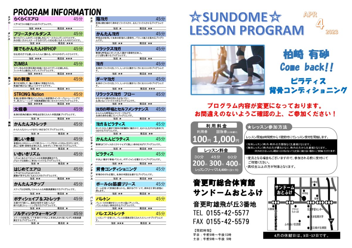 サンドームおとふけでは、16歳以上の方を対象としたフィットネスレッスンを開講しています。