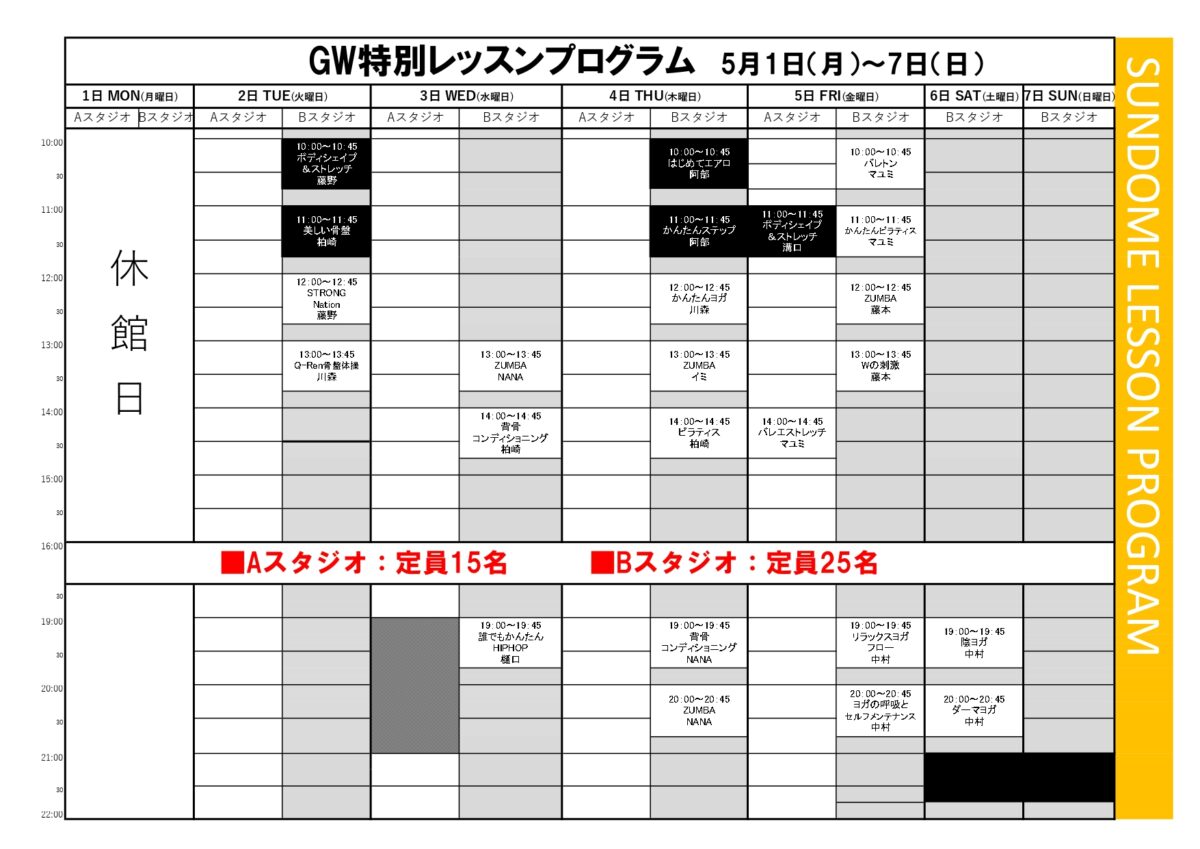 公開日:2023年04月29日(土曜日) 【音更体育館】5月GWPG_page-0001 (1) 音更町総合体育館 5月レッスンプログラム サンドーム音更の人気の記事 2024年7月10日 アリーナ・サブアリーナ利用予定表 (7/10現在) 2019年6月27日 サンサン運動教室の製作活動| 今月のテーマは「かき氷・ペンギン」 2020年6月8日 【一般使用状況】 2019年12月1日 音更町総合体育館 12月レッスンプログラム 2020年3月3日 【臨時休館のお知らせ(新型コロナウイルス感染拡大防止)】 2018年8月28日 スケート教室を開催します!! 知りたい情報をさがす 目的から施設を探す 個人で利用する 団体で利用する 教室をさがす