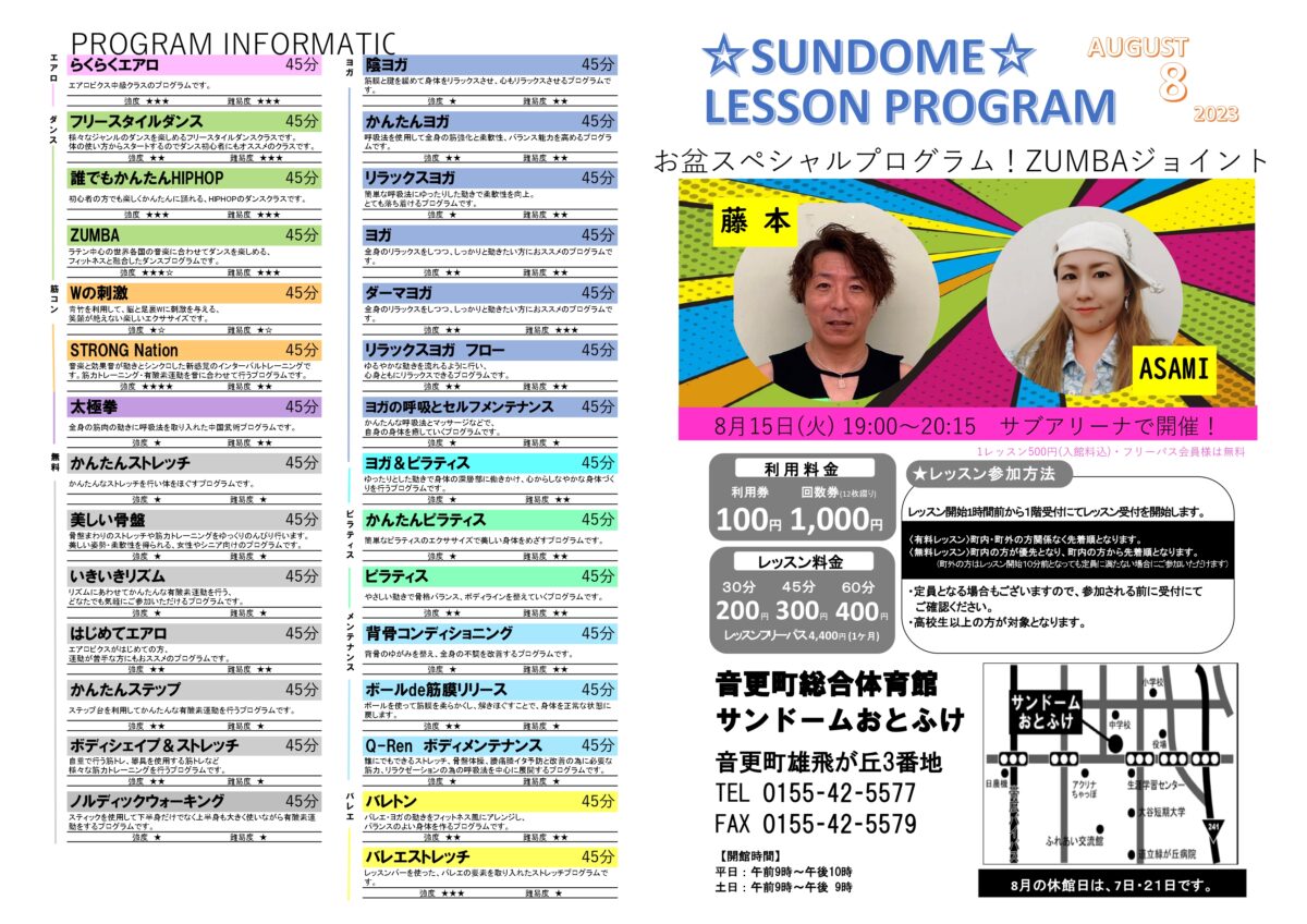 2023年8月レッスンプログラムのお知らせです!