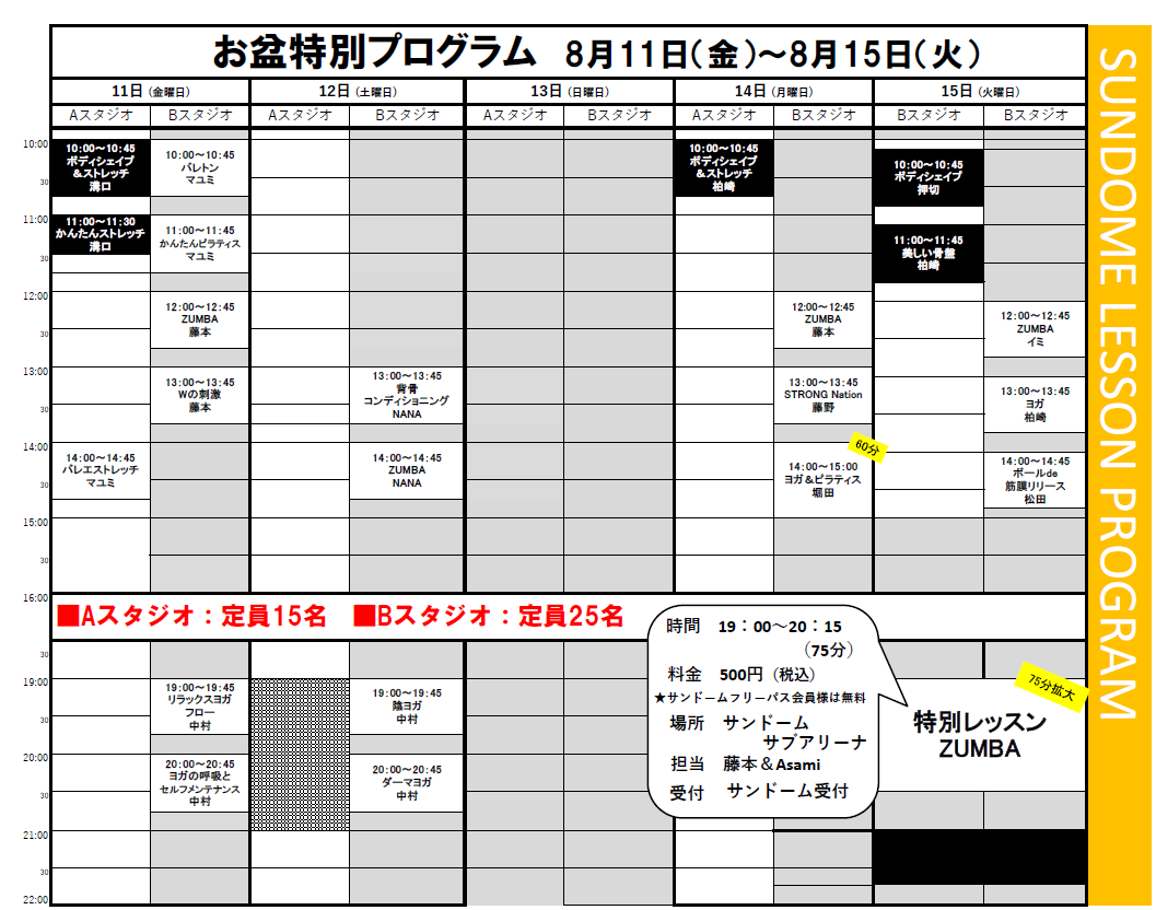 8月11日(金)~15日(火)はお盆特別プログラムに変更となります!