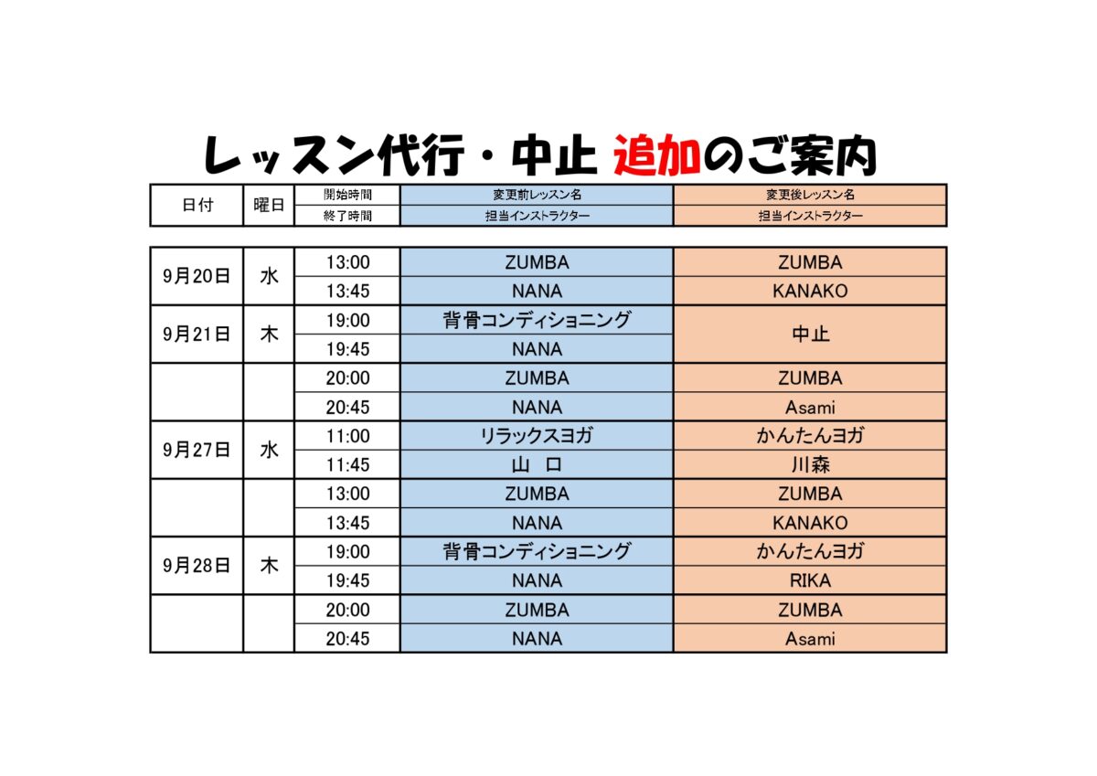 【スタジオレッスン代行のお知らせ】