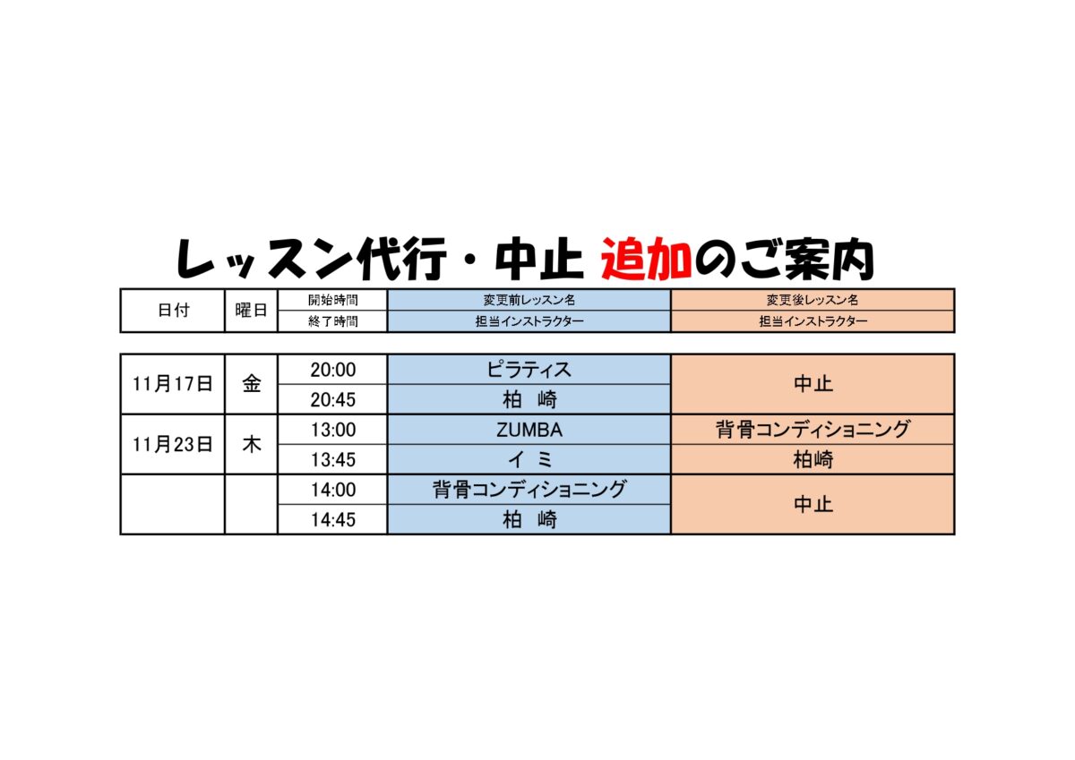公開日:2023年11月17日(金曜日) 令和版 代行POP 1 (version 1)_page-0001 (27) スタジオレッスン代行のお知らせ サンドーム音更の人気の記事 2024年7月10日 アリーナ・サブアリーナ利用予定表 (7/10現在) 2019年6月27日 サンサン運動教室の製作活動| 今月のテーマは「かき氷・ペンギン」 2020年6月8日 【一般使用状況】 2019年12月1日 音更町総合体育館 12月レッスンプログラム 2020年3月3日 【臨時休館のお知らせ(新型コロナウイルス感染拡大防止)】 2018年8月28日 スケート教室を開催します!! 知りたい情報をさがす 目的から施設を探す 個人で利用する 団体で利用する 教室をさがす
