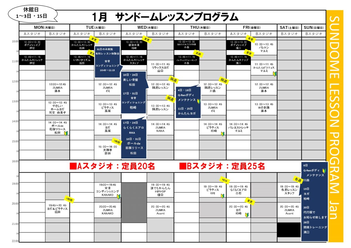 【1月スタジオレッスンプログラム】