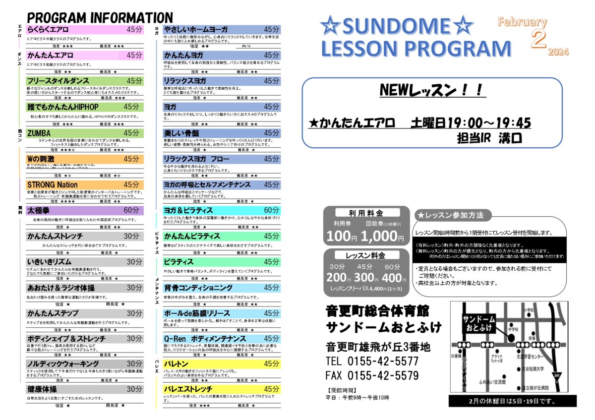サンドームおとふけでは、16歳以上の方を対象としたフィットネスレッスンを開講しています。