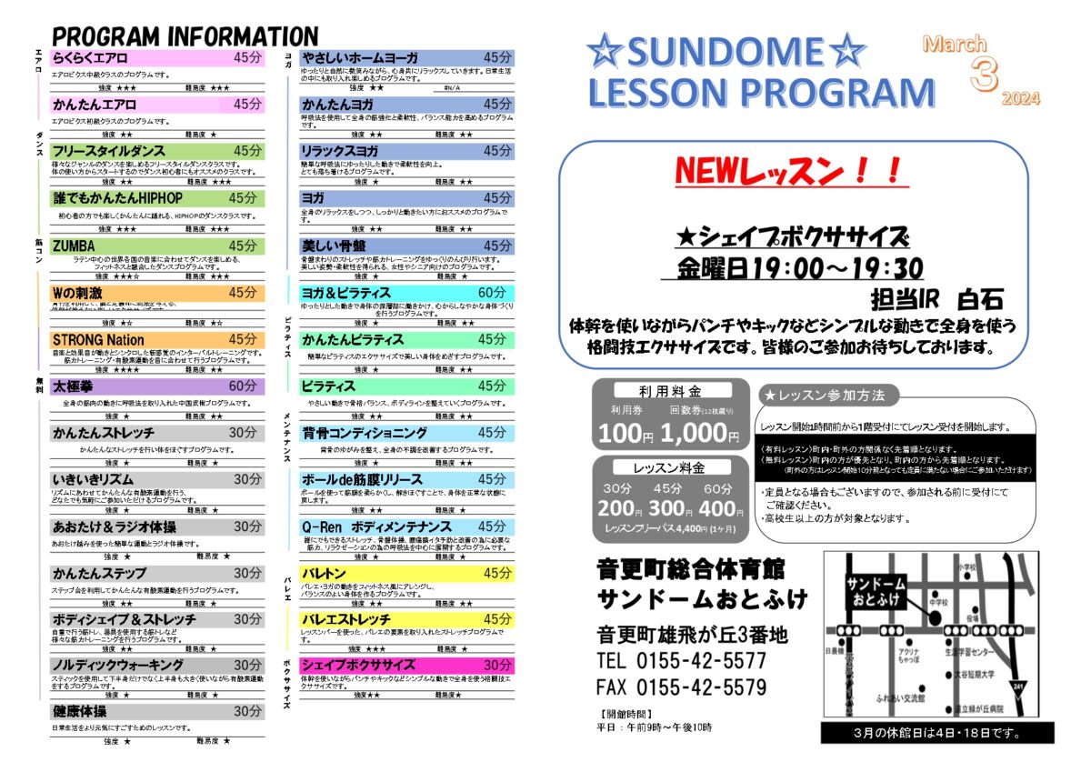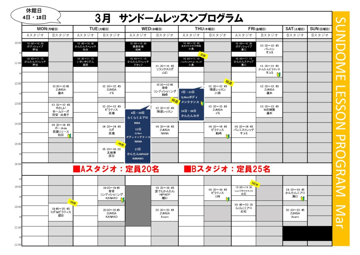 【3月スタジオレッスンプログラム】