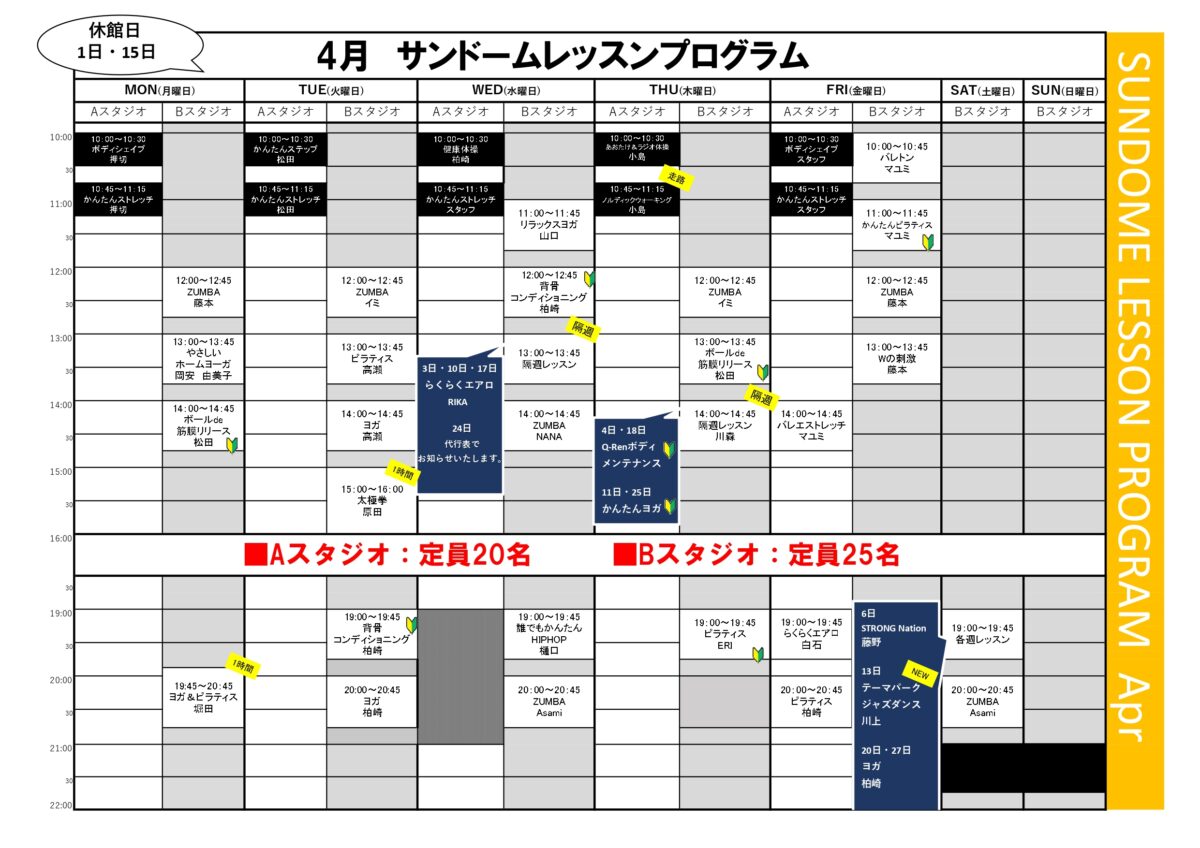 【4月スタジオレッスンプログラム】