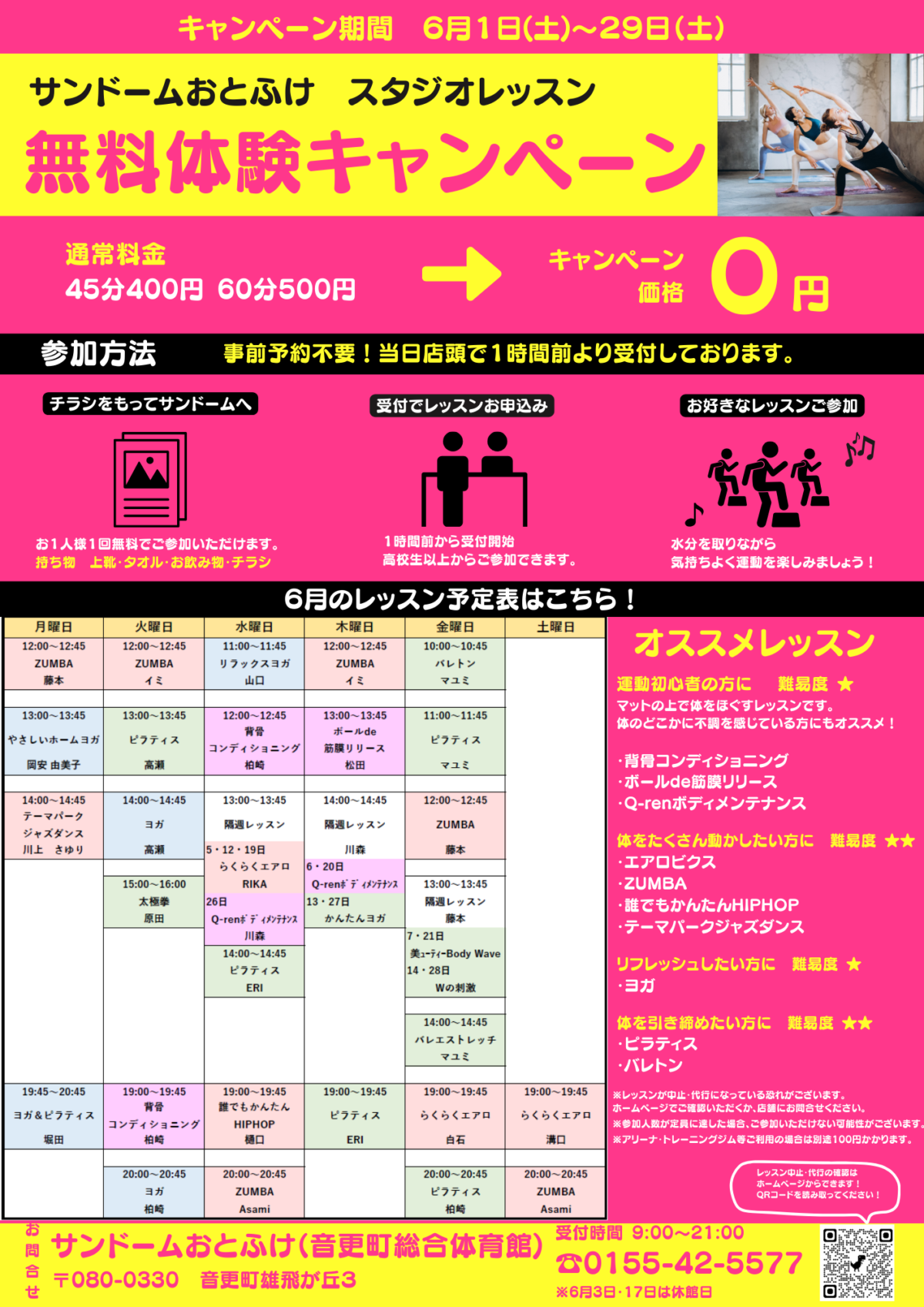スタジオレッスンが1回無料でご参加いただけます😍