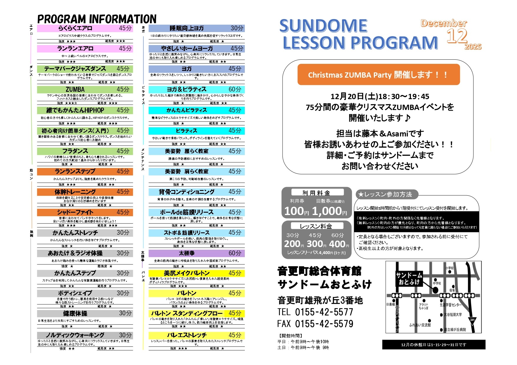 2025年12月レッスンプログラムのお知らせです!