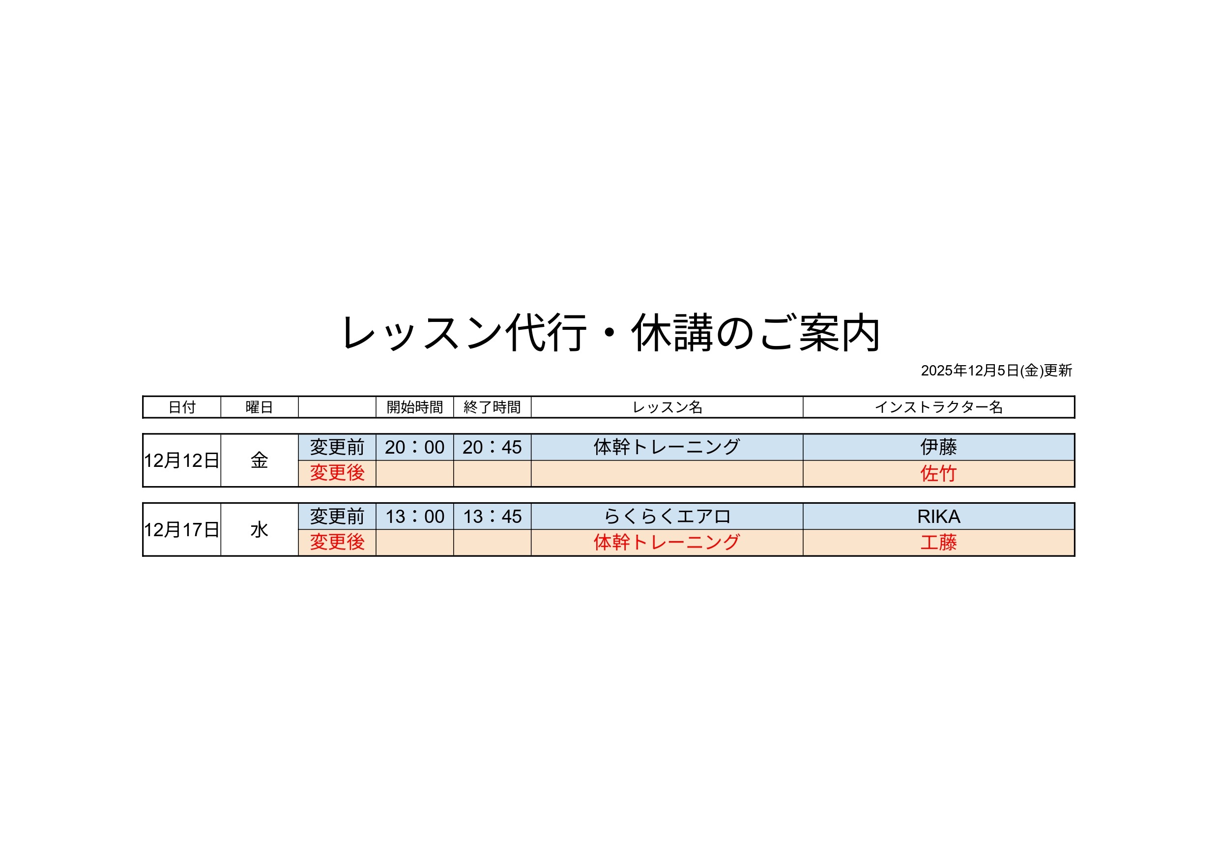 スタジオレッスン代行のおしらせ