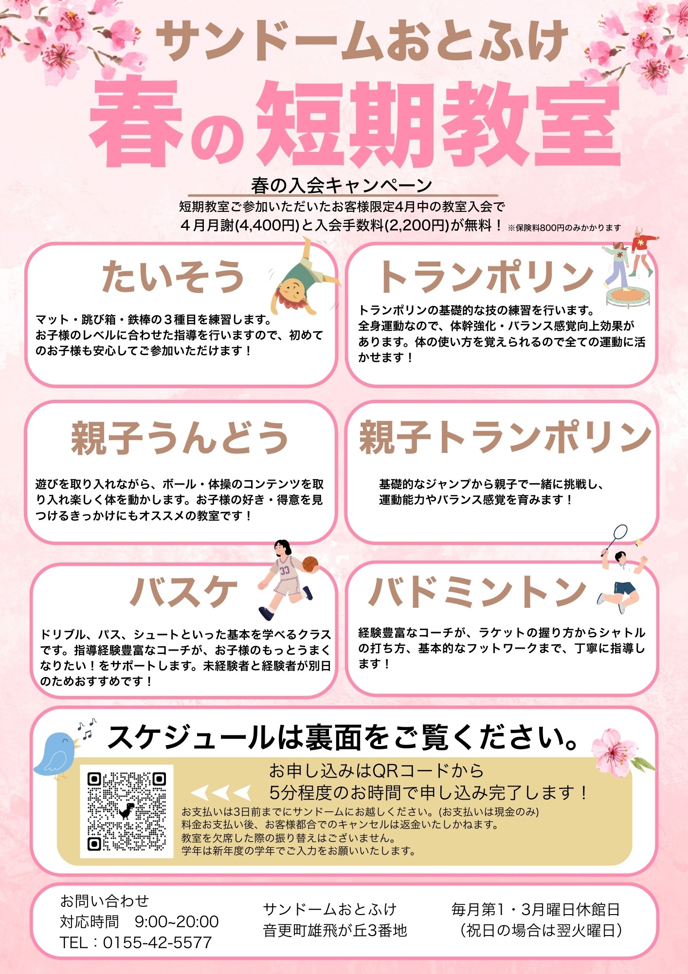 サンドームおとふけでは春の短期教室を実施いたします!!