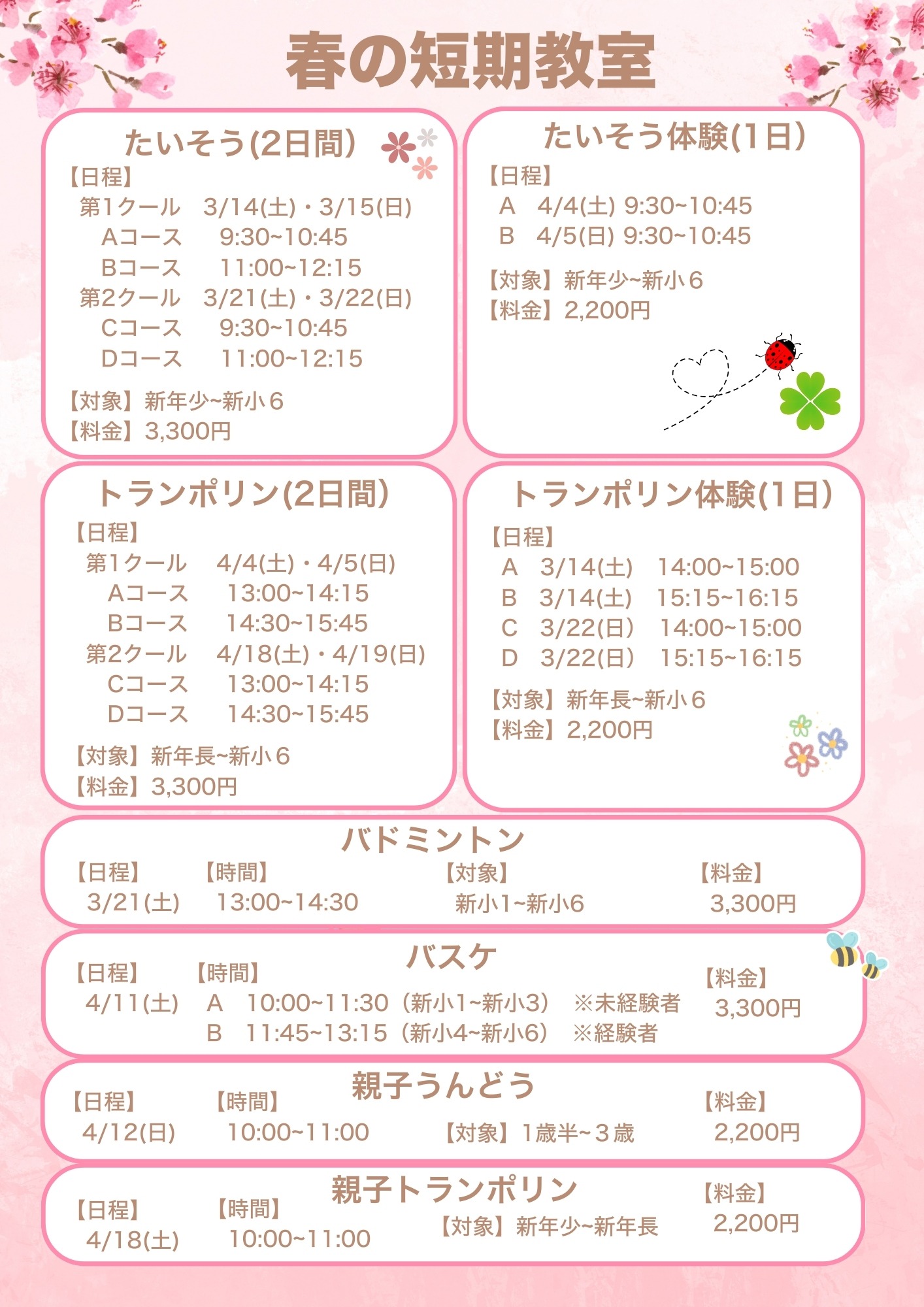 春の短期教室のご案内です🌸