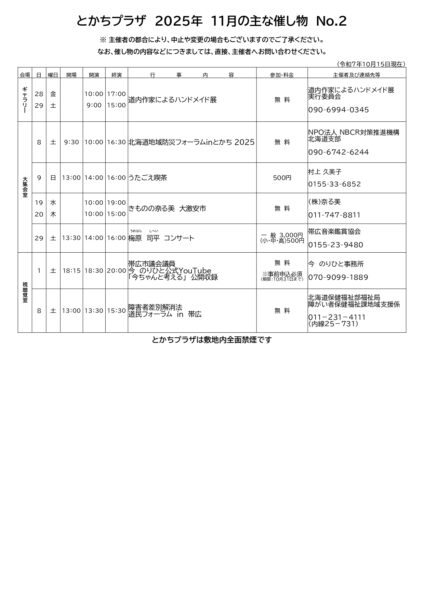 とかちプラザ 〒080-0014 帯広市西4条南13丁目1 ℡ 0155-22-7890(受付時間9:00~22:00) [休館日] 毎週月曜日(月曜日が祝日の場合は翌火曜日が休館日となります) 年末年始 12月29日〜1月3日