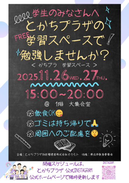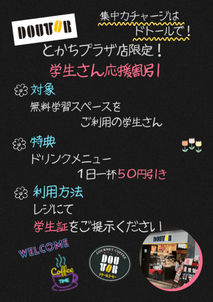 学生の皆様へ、とかちプラザより応援割引でサポート♪