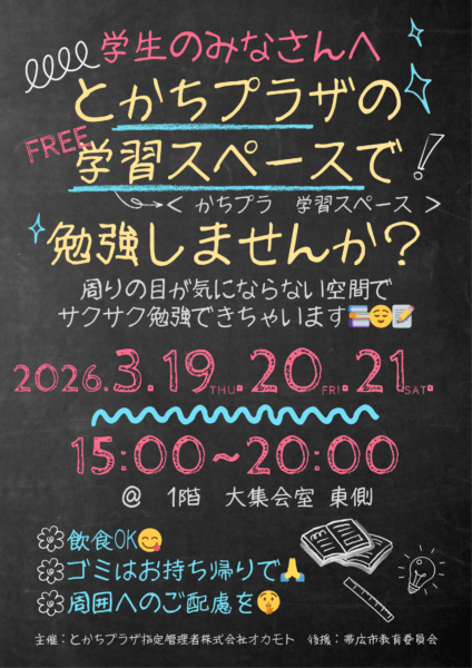 学生の皆様へ、とかちプラザより応援割引でサポート♪