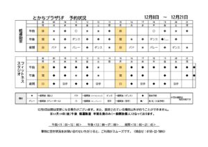 軽運動室・フィットネススタジオ予約状況一覧(12月8日~12月21日)