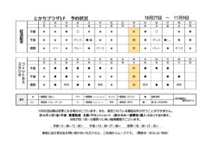 軽運動室・フィットネススタジオ予約状況一覧(10月27日~11月9日)