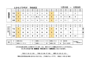 軽運動室・フィットネススタジオ予約状況一覧(12月15日~12月28日)